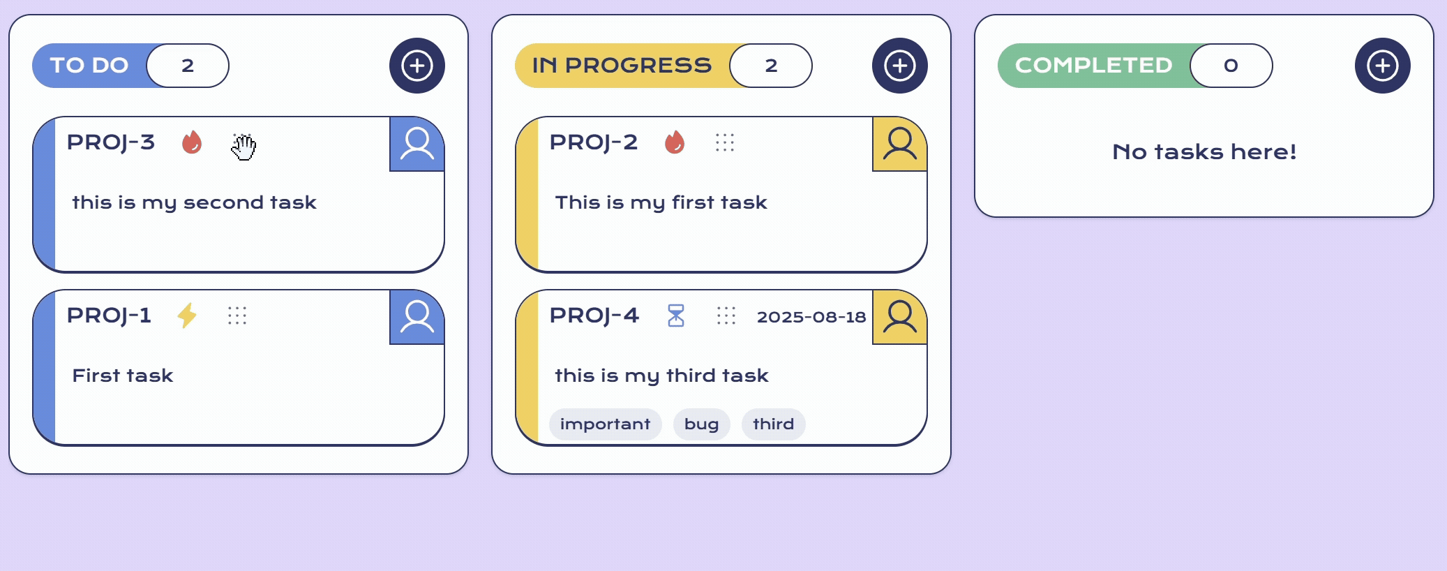Reorder, assign, and move tasks between columns with effortless drag-and-drop.